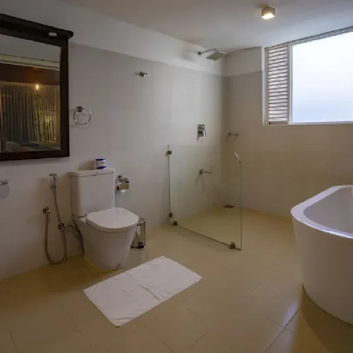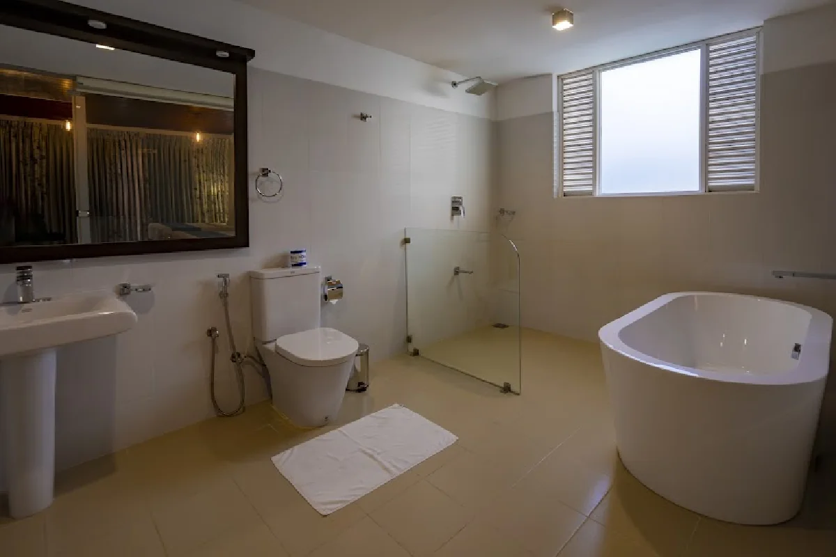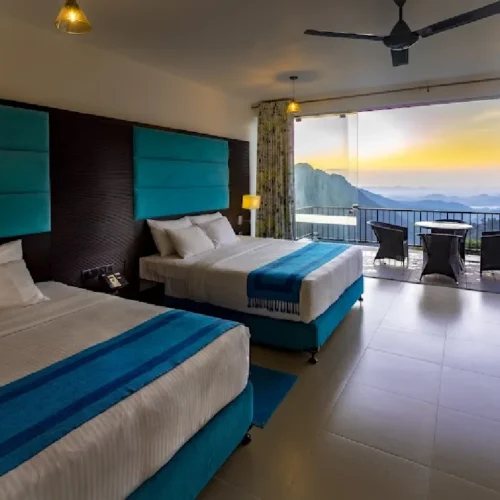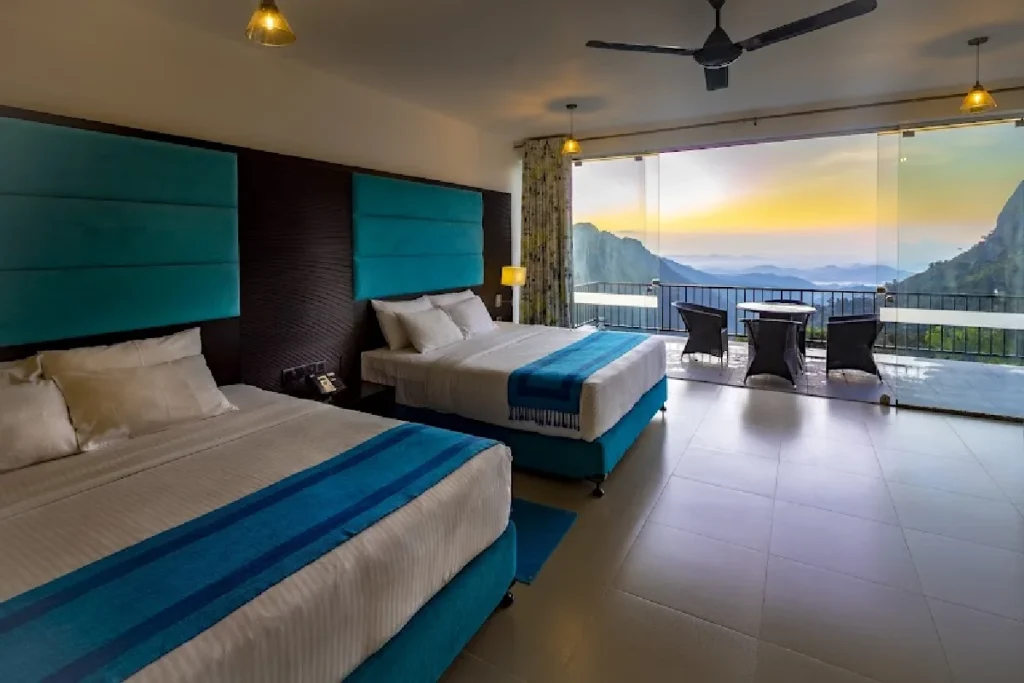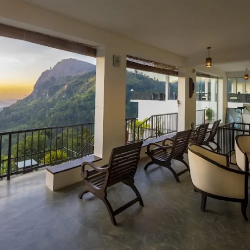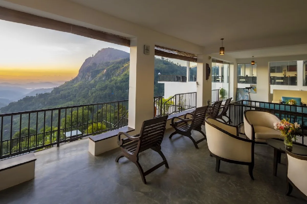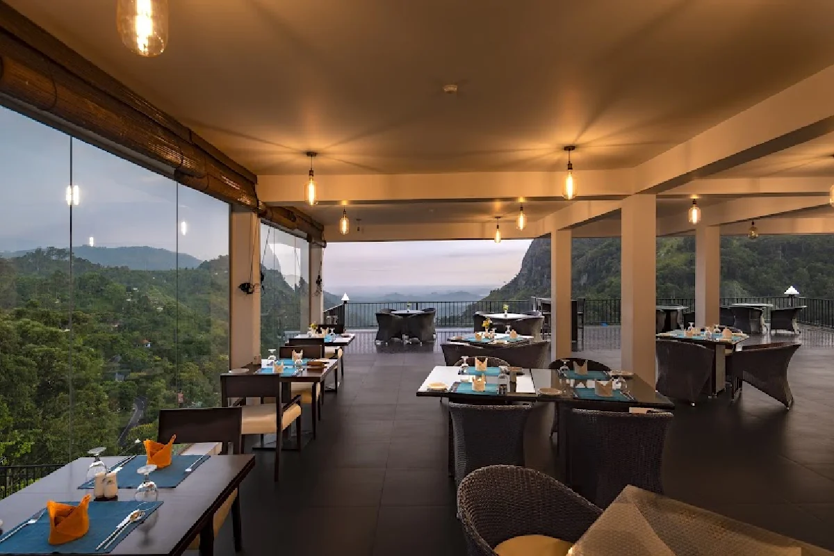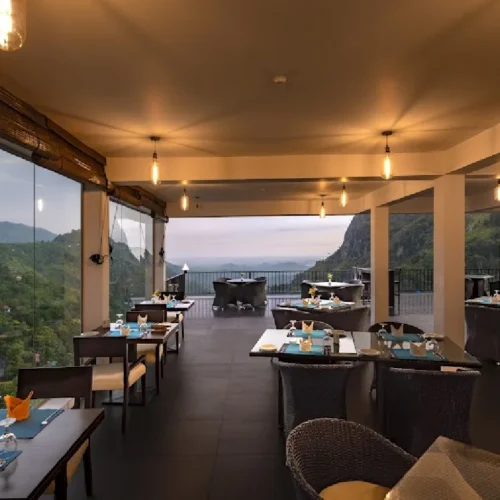 Panorama Suite: The spacious Panorama Suite has a separate living and dining area, and separate pantry. The Suite opens out to a private balcony with breathtaking views of the Ella Gap and Ravana Falls. Interior is furnished with 2 King-sized beds, a dining table for 6, lounge chairs, and a 55 inch LCD TV. The ensuite bathroom has a bathtub and hot water shower.